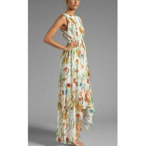 NEW Alice + Olivia Mel Open Back Gathered High-Low Maxi Dress Exotic Poppy