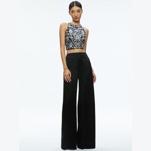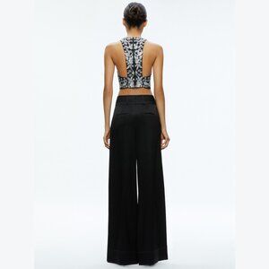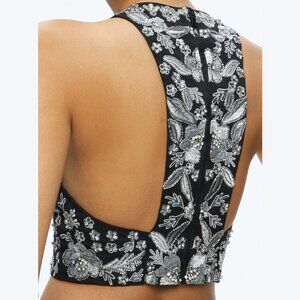 NEW Alice + Olivia - Size 12 Tru Racer Back Fitted Crop Top - Black/Silver