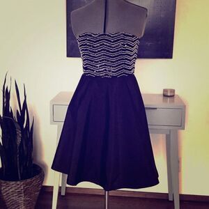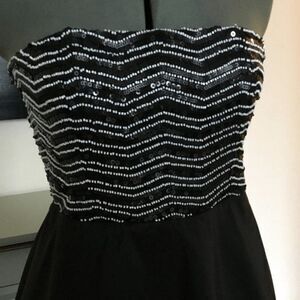So much style! And the details! Beaded and sequined bodice has contrast backing and taffeta skirt. New, without tags. Never worn.