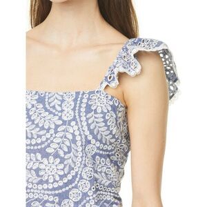 NEW Alice + Olivia Women’s 4 Honor Flutter Sleeve Embroidered Chambray Eyelet Tu