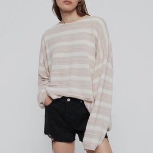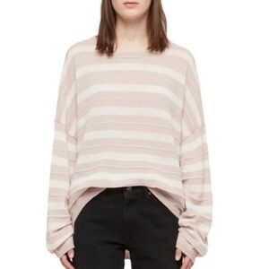 NEW All Saints Cassia Wool Alpaca Blend Striped Oversized Sweater Pink/Cream
