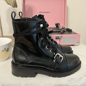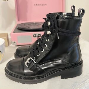 NEW AllSaints Lace Up Heeled Leather Boots with Buckle