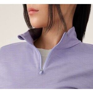 This NWT Allbirds Natural Run Mid Layer in size XS features a Mock Neck neckline, Zip closure, and Long Sleeve with Thumbholes. Made of a Blended Fabric including Nylon, Spandex, Tencel, and Merino Wool in a breathable and stretchy design. The pullover style in a vibrant Purple Hush color is suitable for travel, activewear, and casual wear across all seasons. Perfect for outdoor activities like hiking and running, offering easy care and machine washability.