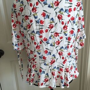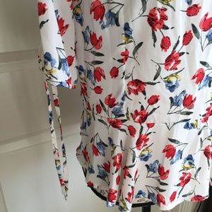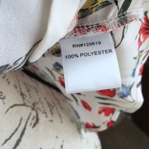 Gorgeous blouse that is perfect for summer. New and never been worn. It have the clasp for the tag, but purchased without the tag. It has a beautiful floral pattern. Beautiful large buttons. In great condition. I am the original owner and this piece comes from a smoke free environment.