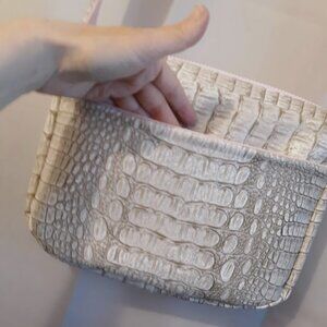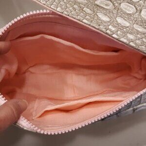 NEW Alligator print pebbled Faux Leather Satchel Shoulder Bag Beige Pink Minimal