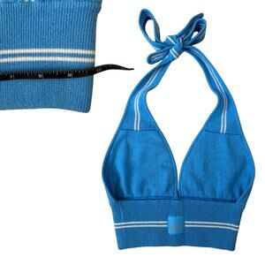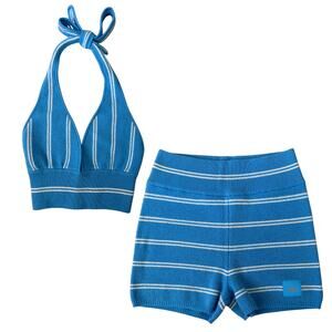 NEW Alo Yoga Cashmere Mini Stripe Halter Tank/Shorts Set Azure Sz S Retail $386
