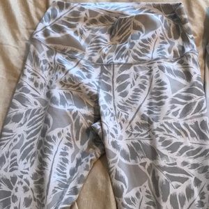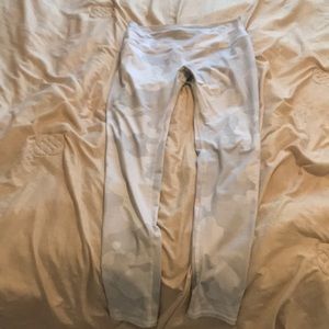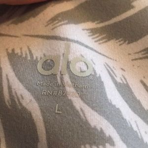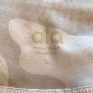 I have two pairs of Alo yoga leggings; sold together only with pack slip receipt !!! One is a light washed camo grey, and the other is floral white and grey! 75$ for both ๐ BRAND NEW