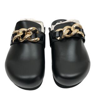 NEW Alohas Fireplace Chain Link Black Leather Clogs Mules Slide Sandals 35 US 5