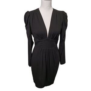 Keywords: Amanda Uprichard Dress, Analeigh Dress, Black Mini Dress, Faux-Wrap Design, Long Puff Sleeves, Shirred Dress, Size Small Dress, Women's Clothing, Fashionable Dress, Puffed Sleeve Dress, Small Black Dress, Classic Black Dress, Amanda Uprichard Analeigh, LBD, Little Black Dress