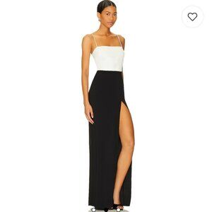NEW Amanda Uprichard Avani Long Dress M Black White Colorblock Formal Evening