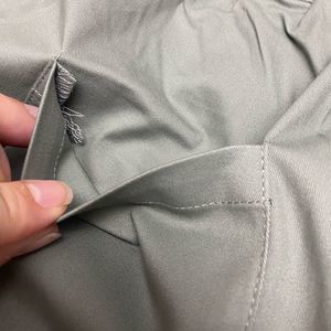 These shorts have pockets on either side. They zip up on the side of the shorts. The waistband has elastic in the back. Perfect for summer. Does not stretch very much. Has some pleats in the front of the shorts. Functioning back pockets.