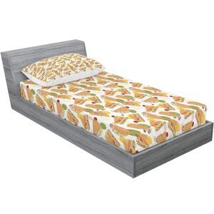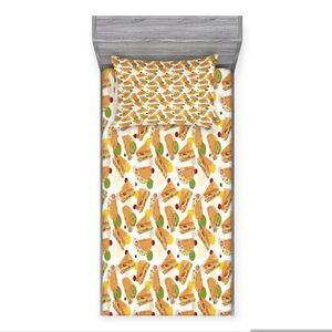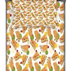 NEW! Ambesonne Fast Food Taco Fitted Sheet & Pillow Sham Set, Sandwich and Tacos