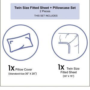 Measurements - 1 twin size sheet 39" wide X 75" long & 1 pillow sham 30" wide X 20" long.