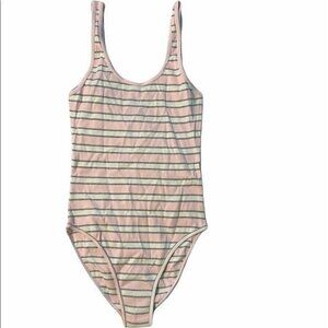 NWOT American Apparel Pink/Gray/White Striped Bodysuit