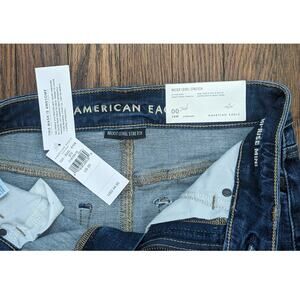 NEW American Eagle Denim Miniskirt 0 Blue Stretch High Rise Raw Edge Distressed