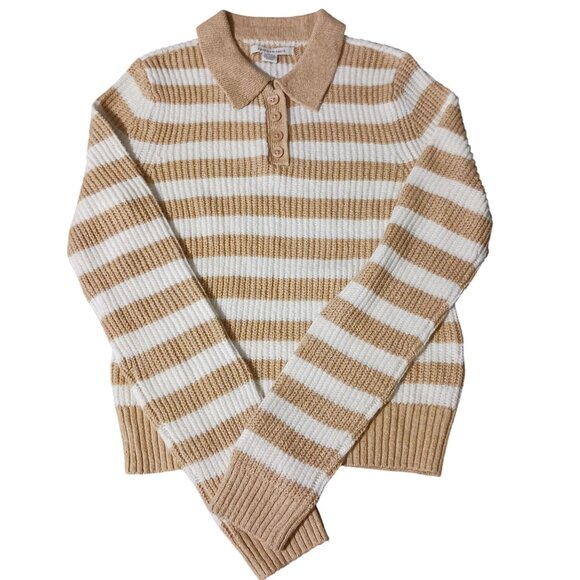 NEW American Eagle Henley Collared Tan/White Striped Sweater Size XS Preppy