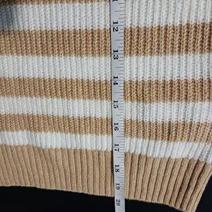 This American Eagle sweater combines style with comfort, featuring a henley style collar and chic tan/white stripes. Ideal for layering or wearing alone, its ribbed pattern adds texture, making it a versatile addition to any wardrobe.