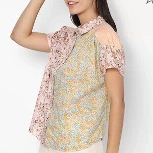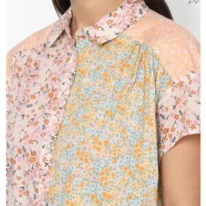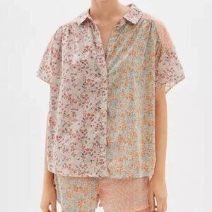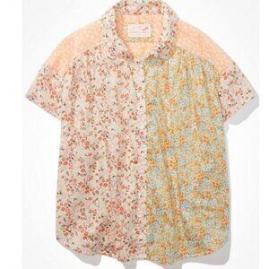 American Eagle Oversized Resort Shirt Micro Floral Patchwork