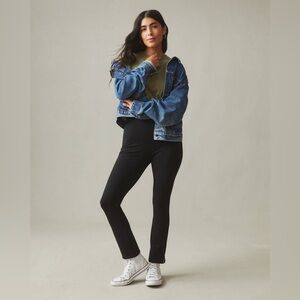 NEW American Giant Ponte Kick Flare Pant in Super Black with Ankle Slits, and Small Pocket on Wearer’s Right Hip, Size Medium (10).