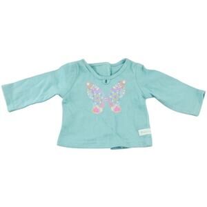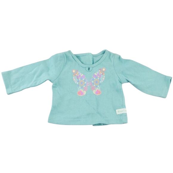 NEW American Girl BUTTERFLY GARDEN PAJAMA TOP Long Sleeve PJ Tee Aqua Blue Pink - NEW In Package!