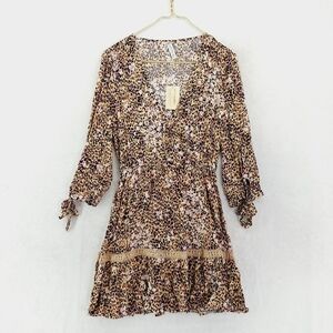 NEW American Rag Animal-Print Brown Tan Summer Ruffle Midi Dress P3670