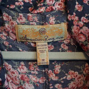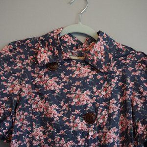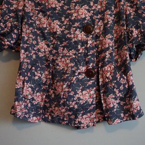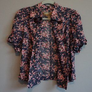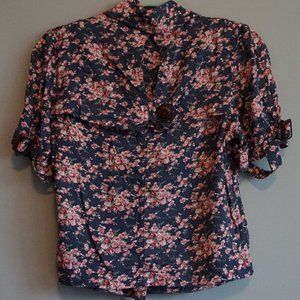 NEW American Rag Navy blue with Pink Flowers Button up Crop Top size M