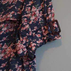 NEW American Rag Navy blue with Pink Flowers Button up Crop Top size M. The tag was removed but the blouse was never worn.