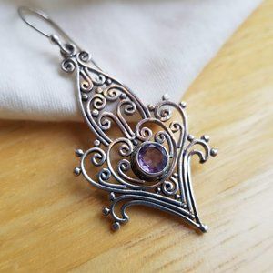 NEW Amethyst & Sterling Silver Filigree Boho Earrings Handmade Dangle Statement