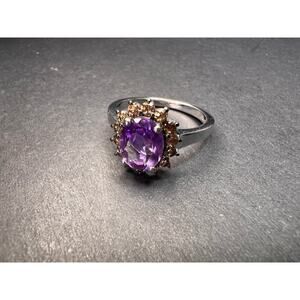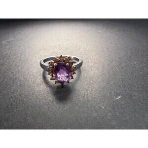 NEW Amethyst and brown zircon halo ring in platinum over sterling silver size 8