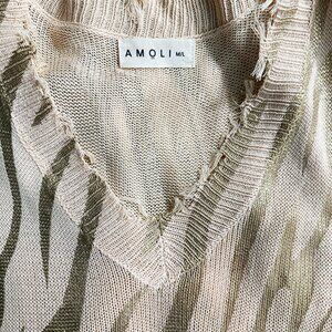 NEW Amoli Zero Effort Zebra Knit Top Chic Frayed Tattered Edges Size M/L