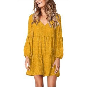 NEW Amoretu Tunic Dress V Neck Casual Loose Flowy Swing L