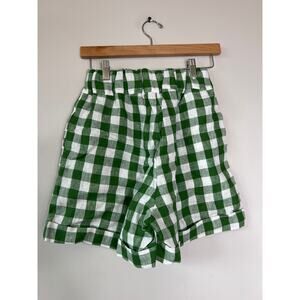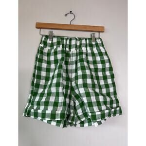 Amour Linen Shorts Mia Elastic Waistband Gingham Shorts Green. new without tag!