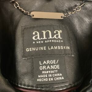 NEW A.n.a Size L Women's Genuine Buttery Soft Lambskin Leather Moto Jacket Black Full Zip Biker