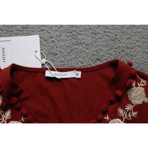NEW Anany Dress Womens Medium Red Floral Beige Embroidery Maxi Boho