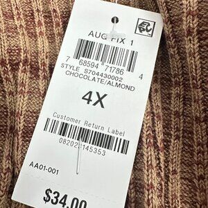 NEW! And Now This Knit Top Plus 4X Chocolate/Almond Stretchy Acrylic & Poly $34
