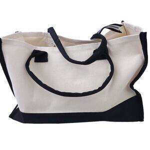 NEW And So the Adventure Begins Canvas Tote Bag Black Cream 17.5"x10.5"x7"