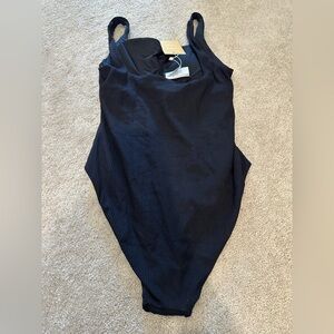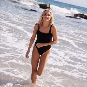 NEW Andie x Claire Holt One PIece L Swimsuit The Byron Black Ribbed Square Neck