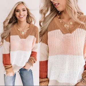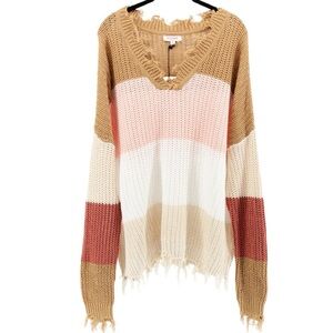 NEW Andree by Unit Striped Colorblock Raw Hem Comfy Casual Chic Sweater Size 1X