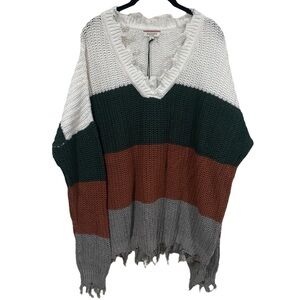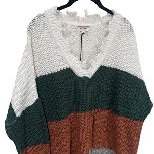 NEW Andree by Unit Striped Raw Hem V-Neck Long Sleeve Comfy Fall Sweater Size 1X
