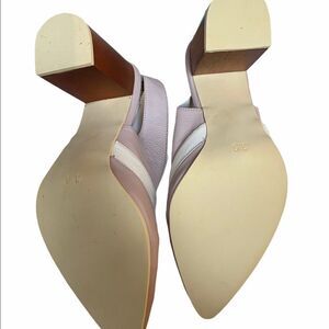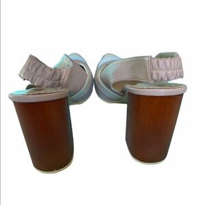 Angela Arias Leather Nude, cream, and white shoe w/ wooden heel.