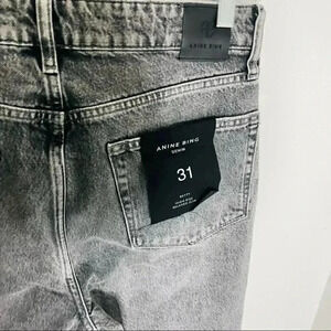 NEW Anine Bing Betty Jeans Dust Grey High Rise Relaxed Slim Fit Distressed Denim