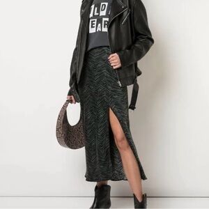 NEW Anine Bing Dolly Silk Midi Skirt Green Zebra Size Medium