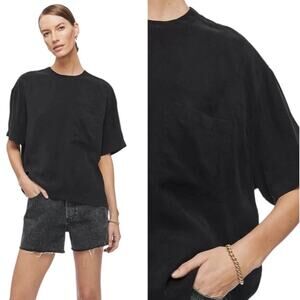 NEW Anine Bing Teagan Short Sleeve Top in Black L/G