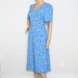 NEW Ann Taylor Blue Rose Print Wrap Dress Sz 8