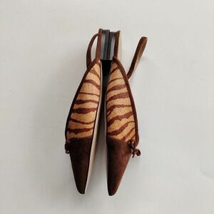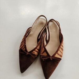 NEW Ann Taylor Brown Zebra Print Calf Hair Fur Pointed Toe Flats WOMENS SIZE 7M