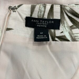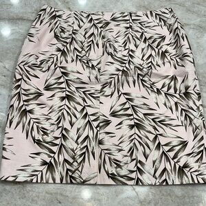 Chic & fresh! Pale pink tropical pencil skirt by Ann Taylor Factory. Features dark green palm fronds, fully lined, cotton-rayon blend. Petite size 6 (6P). New without tags—never worn.