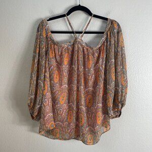 NEW Ann Taylor Factory Womens Large Off The Shoulder Blouse Paisley Boho Shirt