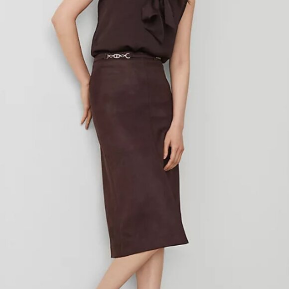 NEW Ann Taylor Faux Suede Chain Waist Skirt (Dark Brown/Chocolate) - Size 4