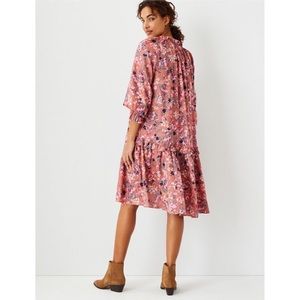 NEW Ann Taylor Floral Ruffle Long Sleeve Swing Dress in Cedar Rose Pink - Size S
