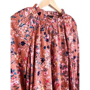 Ann Taylor Floral Ruffle Long Sleeve Swing Dress in Cedar Rose Pink - Size S